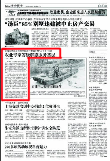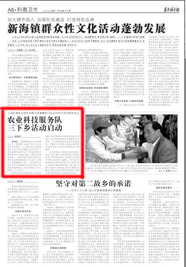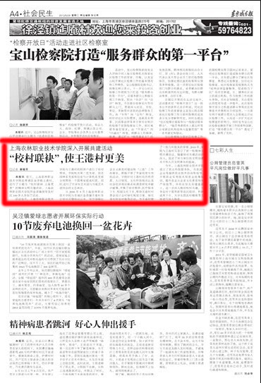 近期,东方城乡报连续报道了学院“科技 文化 环保”三下乡活动的动态,与王港村结对共建和崇明县农委委托学院培养本土化人才的信息。