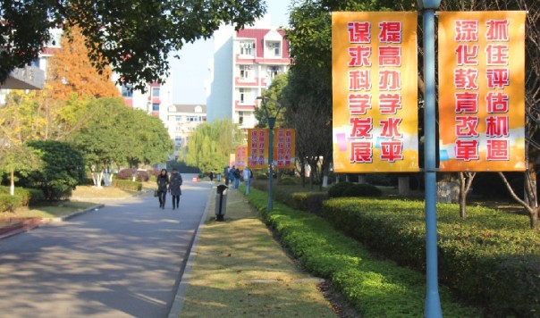 学院迎接评估主体道旗