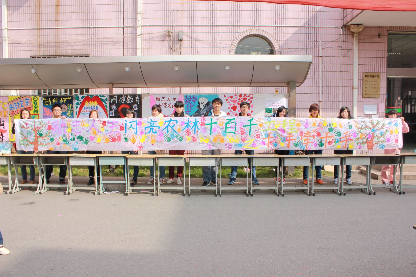 日前,由学生处牵头,商务旅游管理系承办的“励志人生,闪亮农林”—“十百千”工程之“千手牵千手”活动在学校的食堂门口顺利进行。