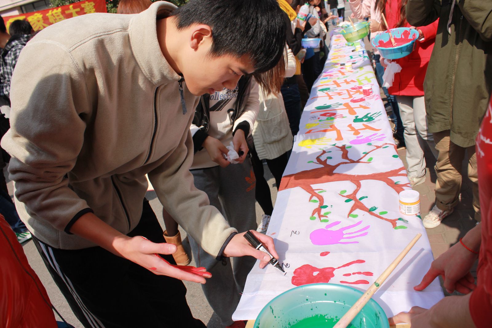 活动现场的集中涂鸦区,站满了“牵手”小组成员,他们用五彩斑斓的颜料向路过的同学们征集手掌印,手掌印相连,结合处还签有他们的姓名,寓意帮扶结对,携手共创美好的未来。新颖的形式吸引了众多同学的目光,他们纷纷卷起袖管,踊跃参与到活动中来,8米多长的宣传横幅上盖满了结对手印,也盖上了他们帮扶结对的决心。