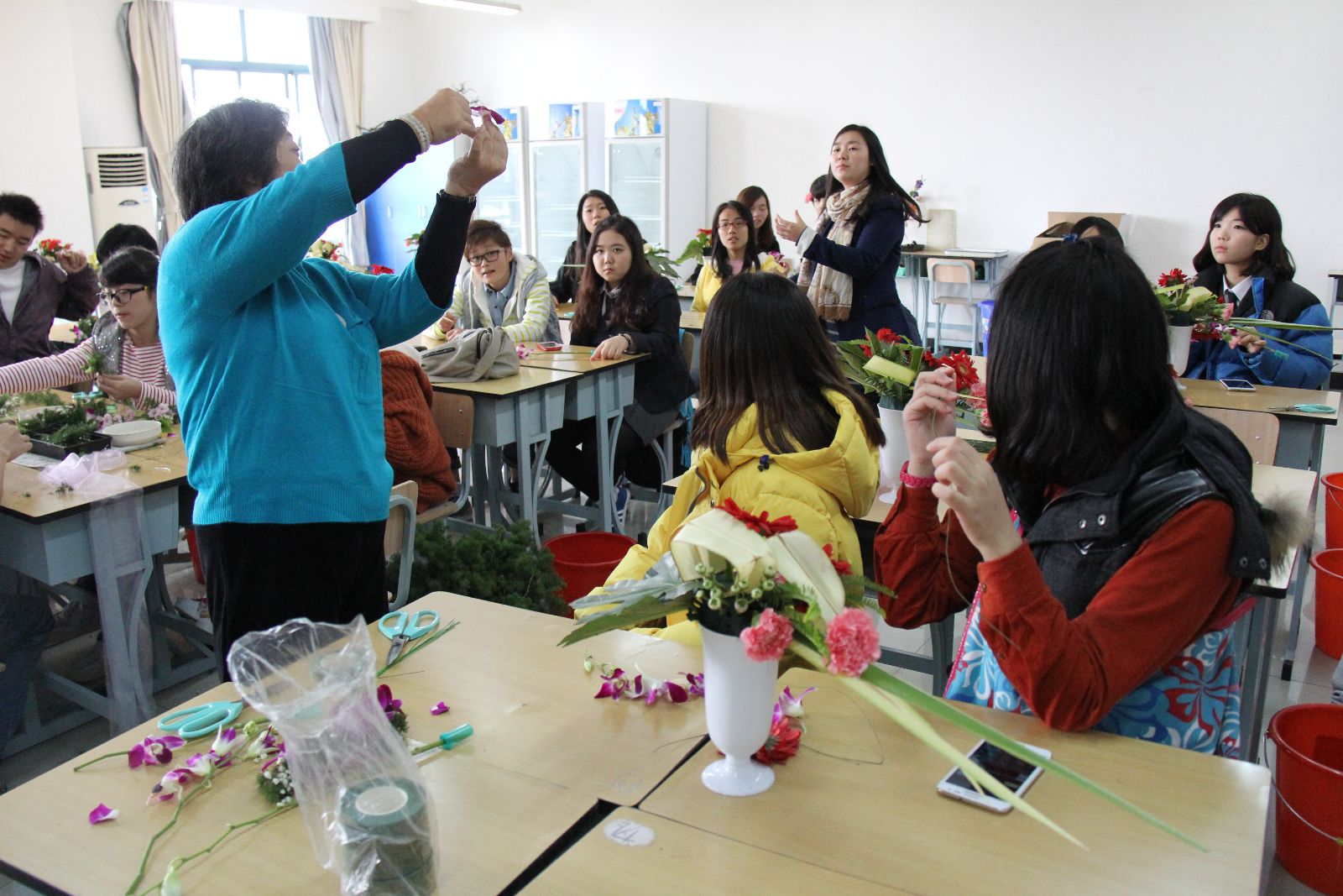 韩国学生观摩插花课