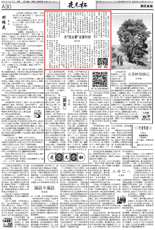 10月20日,新民晚报A30夜光杯刊登我院徐亚斌老师的文章《为“回头看”击掌叫好》,内容如下: