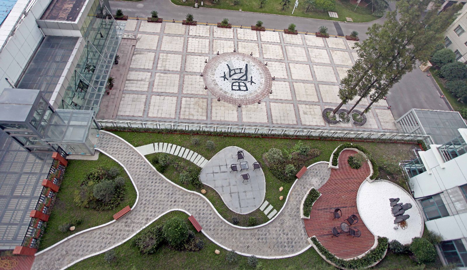 综合楼二楼屋顶占地面积400余平方米屋顶花园种植了四季桂、垂丝海棠、山茶等20余种植物,不仅美化了环境,而且为园艺园林系提供了实训工位。动科实验实训楼的屋顶绿地上,装饰有楷书“尚农”二字,彰显农业特色。