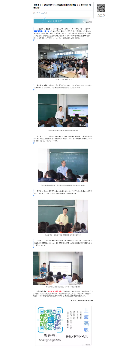 6月30日,上海高职报道我院《大国三农》第六到九讲开讲的情况。