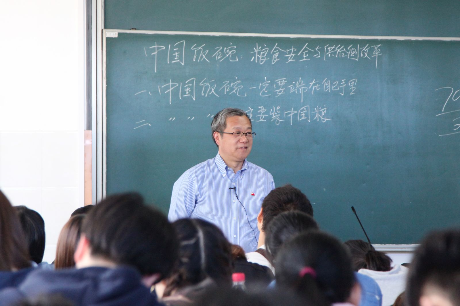 第七讲中,吴乃山老师通过国际石油价格的涨跌对粮食需求量的影响,自然引入解决粮食问题,并结合当前国内和国际的发展形势,从经济、政治和国家战略高度深刻阐述了“中国饭碗”的问题,引发在场学生深思。