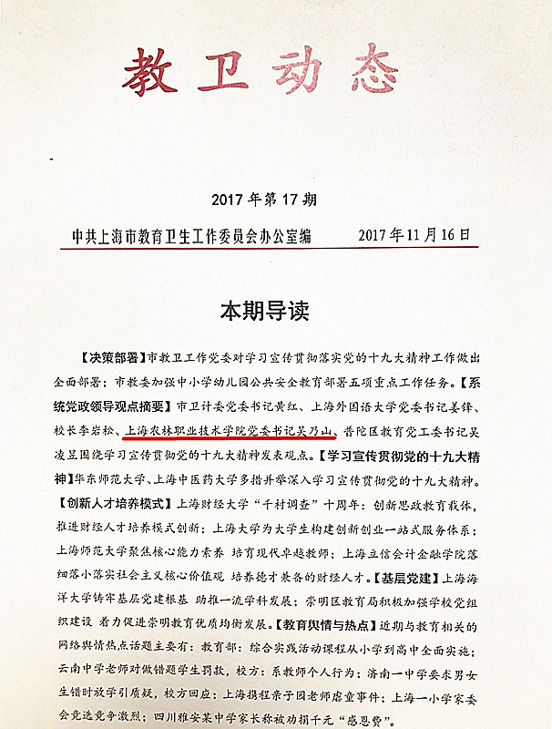 2017年第17期《教卫动态》在系统党政领导观点摘要栏目中,发表了我院党委书记吴乃山同志关于贯彻党的十九大精神用“七面镜子”提升党的建设工作水平的文章。观点如下: