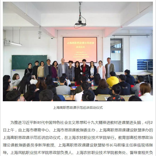 4月9日,上海高职报道上海高职思政课示范巡讲启动仪式在我院举行。