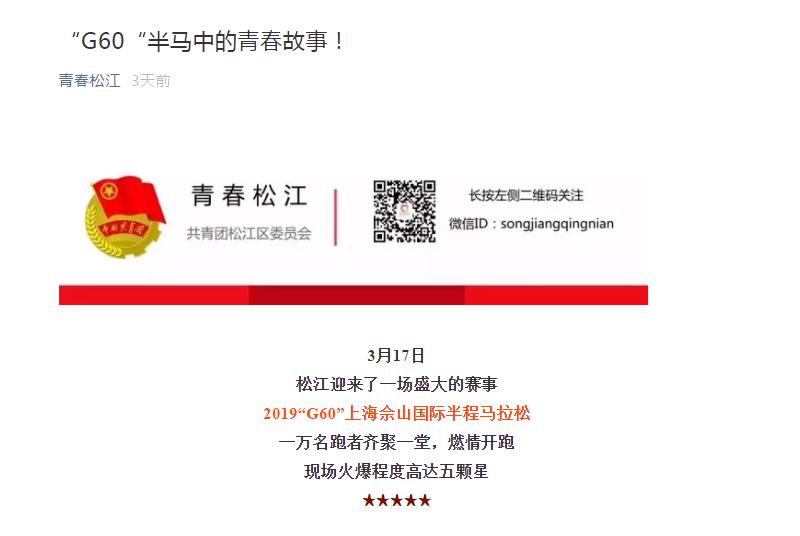 3月18日,青春松江和微松江微信公众号分别报道我院学生志愿者服务2019“G60”上海佘山国际半程马拉松。