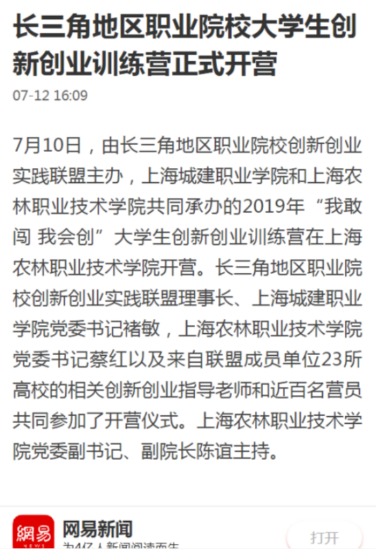 7月12日,网易新闻报道学院承办的长三角地区职业院校大学生创新创业训练营正式开营。
