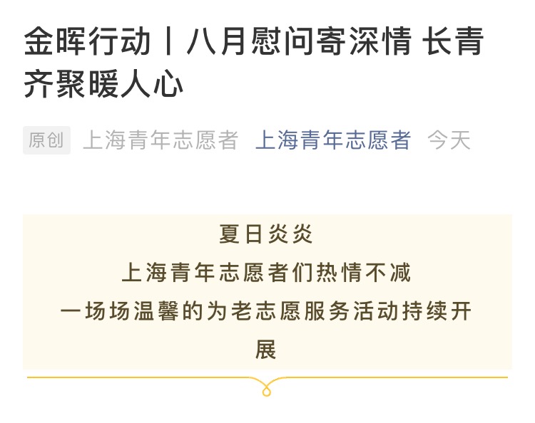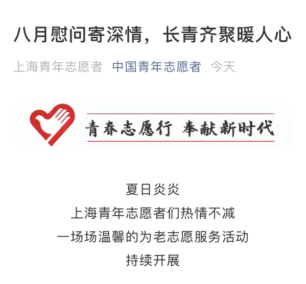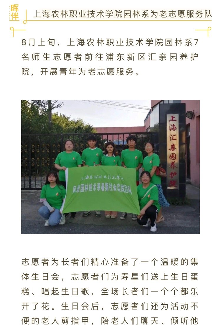 近日,中国青年志愿者和上海青年志愿者微信公众号报道我院园林系为老志愿服务。