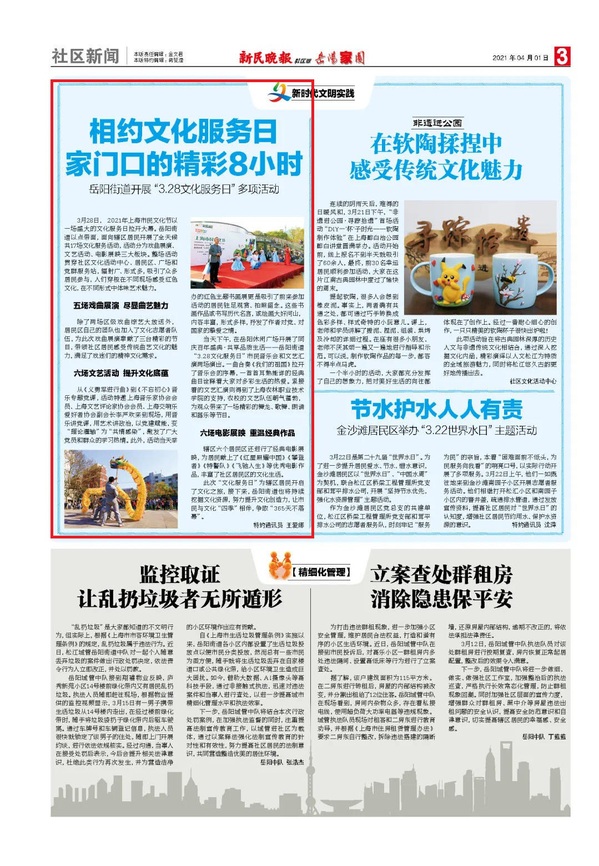 近日,新民晚报报道我院参与岳阳街道“3·28文化服务日”活动,全文如下: