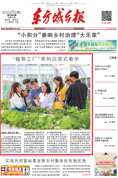 东方城乡报今天头版报道学院植物工厂,原文如下: