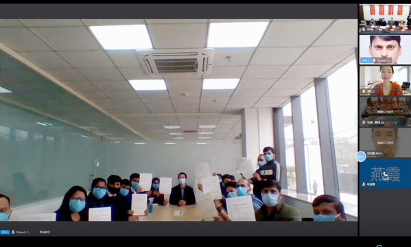 1月21日下午,在第二会议室,学校在线举行首期对外汉语语言项目结业仪式。院长魏华、印度捷勤技术有限公司总经理邱志鹏出席,国际交流合作处、基础部相关老师以及印度捷勤技术有限公司学员参加结业仪式。国际交流合作处处长费明主持仪式。