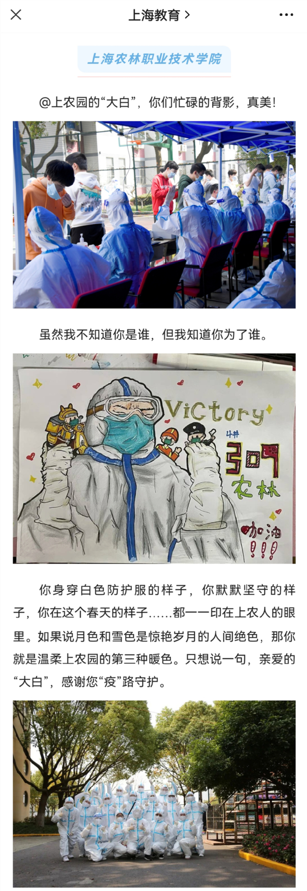 3月19日、20日、25日,“上海教育”公众号对学院师生员工齐心协力做好校园疫情防控进行了多角度报道。