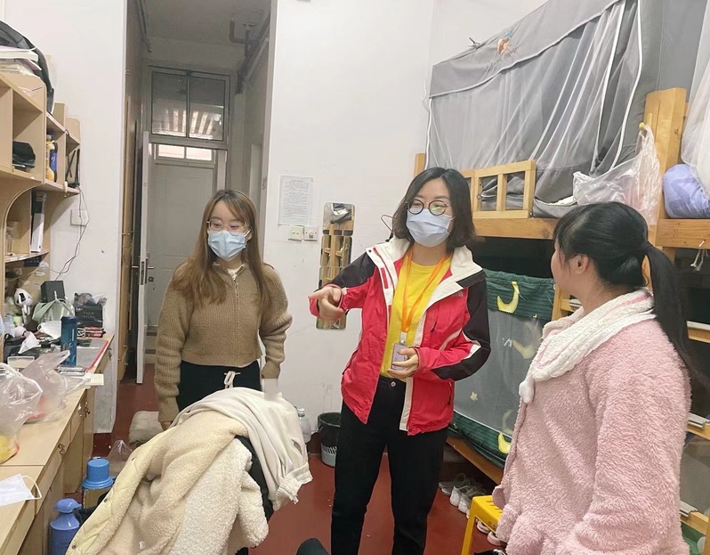 3月24日,校园进入准封闭管理。党总支书记蒋洁带领支部5名党员“驻守”学校,全力保障系部在校师生的生活学习:组织学生有序进行核酸检测、深入学生宿舍楼走访谈心、举办学生宿舍爱国卫生活动、开展贫困生慰问,在特殊时期守护学生的平安健康,把党员的初心与使命落实到为学生服务的点滴之中。