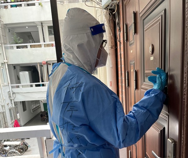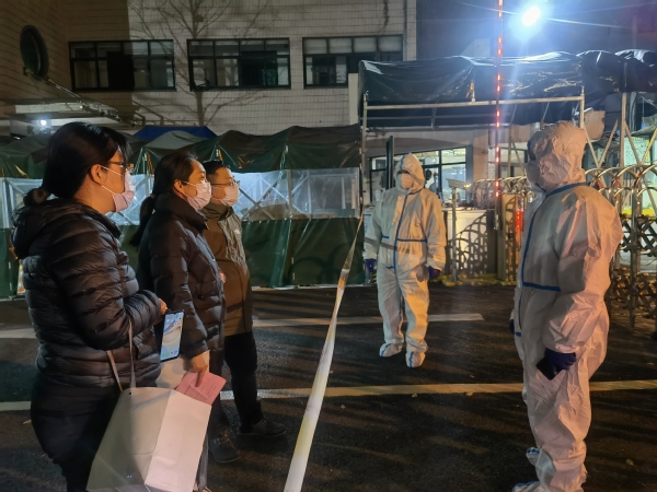 返回家后,他们又迅速到社区报到,活跃在社区疫情防控一线。软件高本201班张易就是其中一员,他的工作是挨家挨户通知社区楼栋居民做核酸。社区抗疫与学校抗疫存在很大不同,居民年龄层较大,人员也较复杂。面对社区老年人居多的情况,张易在上门通知居民做核酸采样时就会帮助他们登记好健康云。面对弄堂里的外国人,张易在通知之前就做了一定功课,提前学习防疫常用英语,以便随时解答他们的问题。带着防护面具上下楼喊口号,眼镜和防护面具很快就会粘上雾气,外加有些老房子的楼梯比较陡峭、光线也比较昏暗,上下楼变成了在黑夜中摸索。面对这些不易,张易想方设法一个个解决,他感慨道:“这次抗疫活动让我深刻的理解了什么是‘为人民服务’。其实很简单,就是群众有需要的时候,党员、团员很自然地先上。这就是中国共产党地力量源泉所在,这就是我们中国共产党为什么能的最好解释。”