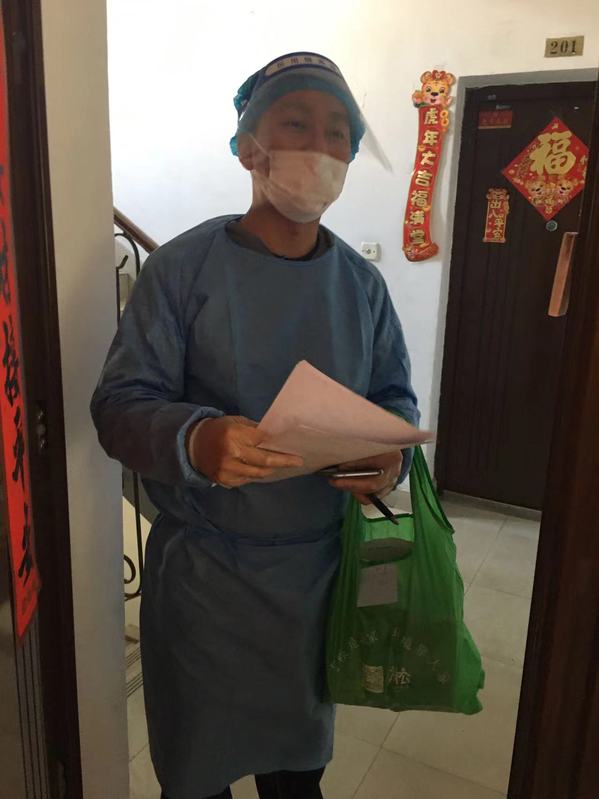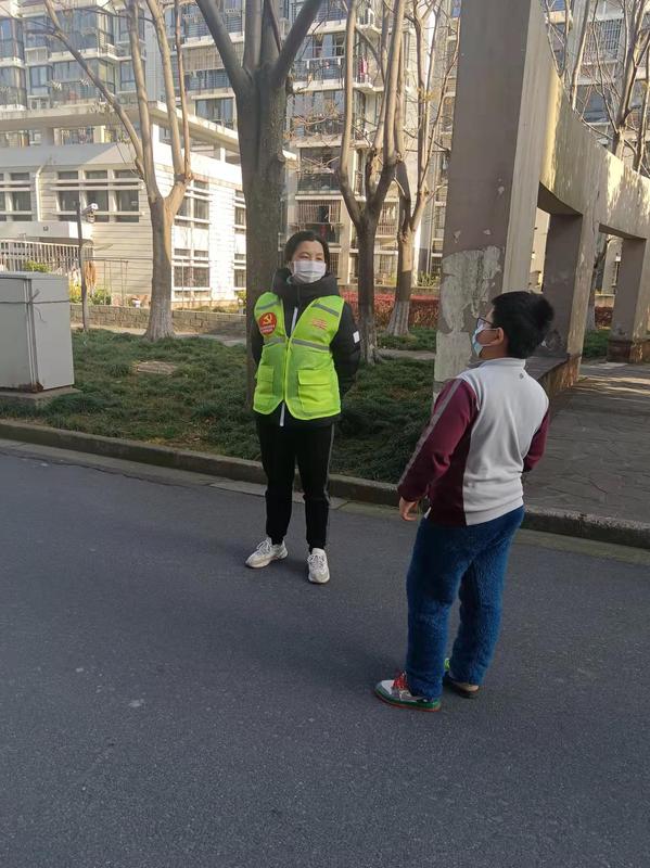 王欢欢老师面临青教赛等多重任务的压力下迎难而上,于4月2日16:00-20:00在小区负责安抚居民情绪,劝阻各自点位的楼栋居民居家、不出门,必要时候帮忙倒垃圾,为打赢疫情防控阻击战发挥先锋模范作用。