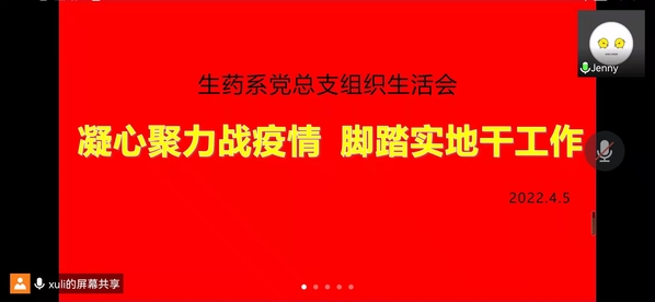 为了充分发挥基层党组织的战斗堡垒和先锋模范作用,根据学院党委工作要求,4月5日,生药系党总支开展“凝心聚力战疫情 脚踏实地干工作”组织生活会,会议以线上方式云进行,全体教职工参加。党总支书记蒋洁主持会议。