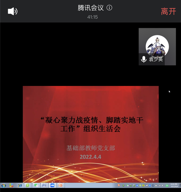 为充分发挥基层党组织战斗堡垒作用和党员先锋模范作用,加强疫情防控,同时推进各项工作,按照学院党委工作要求,4月4日、5日文化思政党总支引领基础部教师党支部与思政课教师党支部线上开展“凝心聚力战疫情、脚踏实地干工作”组织生活会。