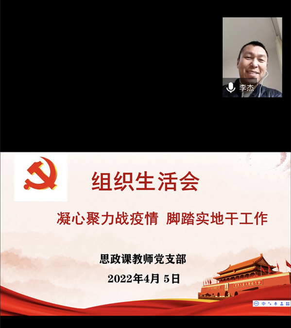 思政课教师党支部书记马伟表示,在抗疫攻坚克难的关键时期,大家要把思想和行动统一到党中央、国务院和市委市政府的决策部署上来,带头担当作为,认真开展线上教学、传播正能量,做好舆论引导,同心守“沪”,打赢这次疫情防控大仗硬仗。