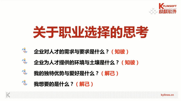 课程共1.5个小时。麒麟软件有限公司高级副总裁张娜、亚信科技控股有限公司人力资源中心招聘部总监仲小玲、东软集团人力资源部北京分部人力资源总监刘浩三位主讲老师结合软件行业前沿和自身从业经验,从国家战略定位、宏观经济政策、行业人才需求、职业定位、求职目标等方面展开课程。围绕2022年政府工作报告中十大关键词,仲小玲老师向学生解读了人工智能、大数据分析、云计算、物联网等软件行业的重要性,未来发展稳步提升;张娜老师就职业选择与职业定位启发学生思考,建议在大学阶段做好职业规划,制定明确目标;刘浩老师就职的东软集团以软件技术为核心,致力于打造智慧城市,服务于医疗健康、智能汽车互联等领域,他介绍了行业发展前沿、人才需求类型,强调了软件专业技术的重要性。正值就业季,大三学生纷纷表示,这次课程非常实用,帮助大家分析了就业前景,指明了就业方向,树立了就业信心。
