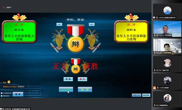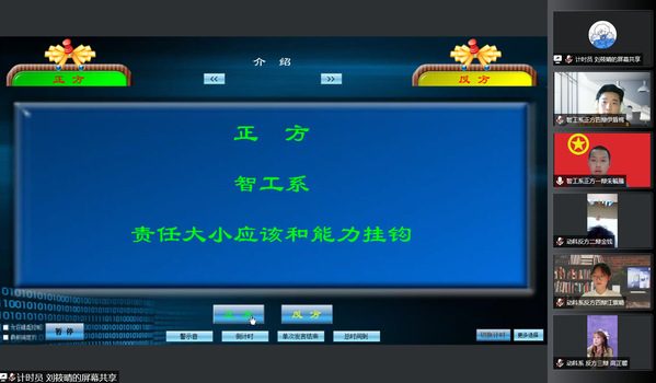 在总决赛现场,智工系与动科系就“责任大小应该or不应该和能力挂钩”的辩题,进行了一场唇枪舌战的辩论,以辩促学,锲而不舍;以辩会友,博采众长。