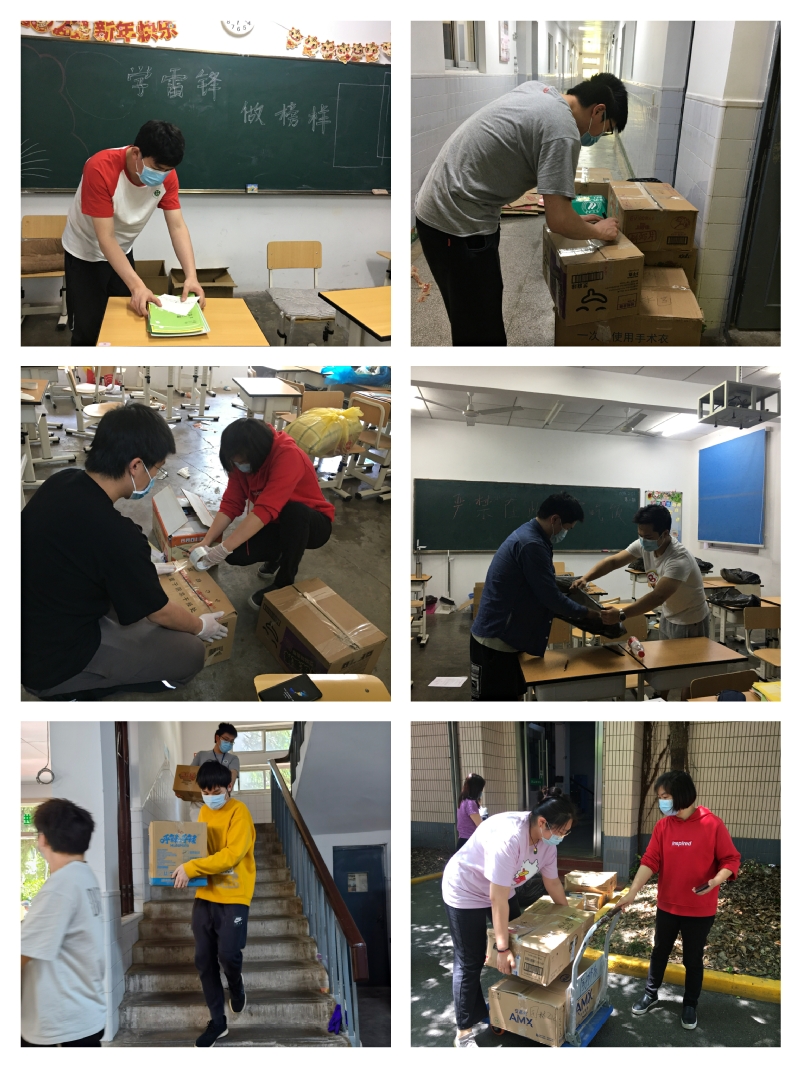 天气炎热,各系学工负责人、班主任佩戴好口罩,错峰错时,将学生书本及其他物品进行装箱打包。班主任们来到自己班级,看着桌上的物品,对同学们的情况如数家珍,“这个学生特别爱看书,阅读面很广,所以抽屉里书最多”“这个学生很聪明,又很懂礼貌,但希望他再开朗一些”......提到自己的学生,老师们滔滔不绝,脸上露出满意的笑容。教室里有学生的书本、水杯、学习用具、纸巾等,老师们通力合作,从清点到分装,再到打包。18个班级,先后12个小时,共计打包了百余箱物品。为方便学生返校后领取,按照班级进行了分类,并细心地贴上了标签。打包之余,学工队伍又化身搬运工,将学生物品安置到各系学生活动室。