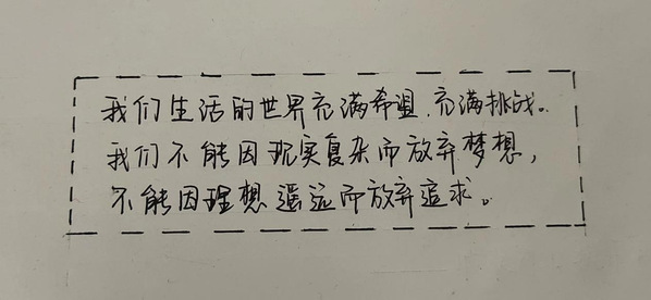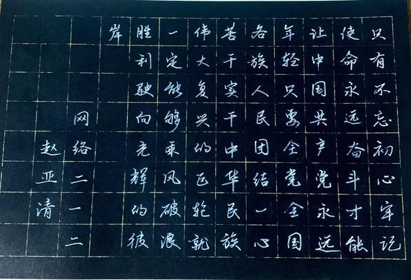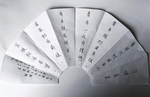 在手抄习语中,同学们用书法、手抄报、画扇等文创形式誊抄习近平总书记金句,从中汲取精神营养和奋斗力量。网络212班赵亚清的《不忘初心,牢记使命》、软件(高本贯通)211班王梓馨的《愿以吾辈之青春,捍卫盛世之中华》等书法作品表达了青年学子的理想信念,展现了同学们拳拳爱国之心。同学们纷纷说:“通过这个活动,既温习了习近平总书记对我们青年人的殷切寄语,也让我们在欣赏书法艺术中增强文化自信,达到精神与视觉的双重享受。”