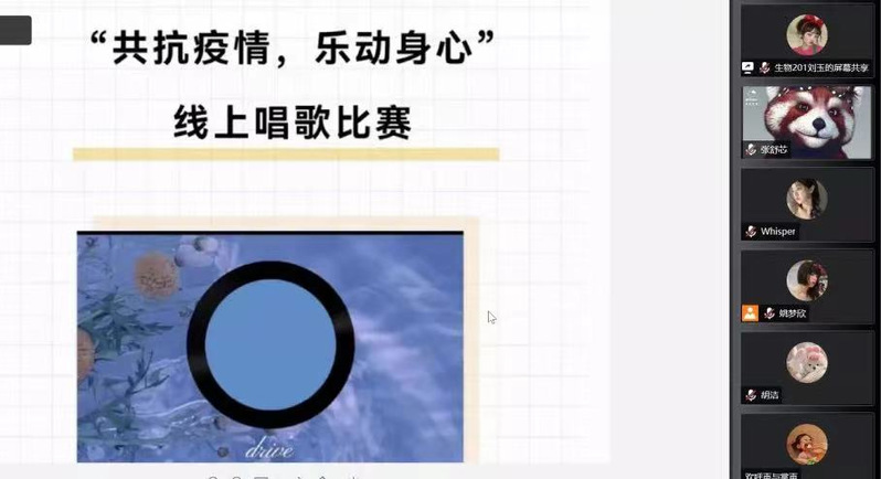 在线上歌会活动中,同学们以曲作戟,以乐为援,以艺战疫。《暖暖》《从前说》《房间》《我只在乎你》......同学们相聚云端,用歌声凝聚力量,用旋律传递温暖,将信心融入一首首鼓舞人心的歌曲中,致敬奋战在抗疫一线的守护者们。