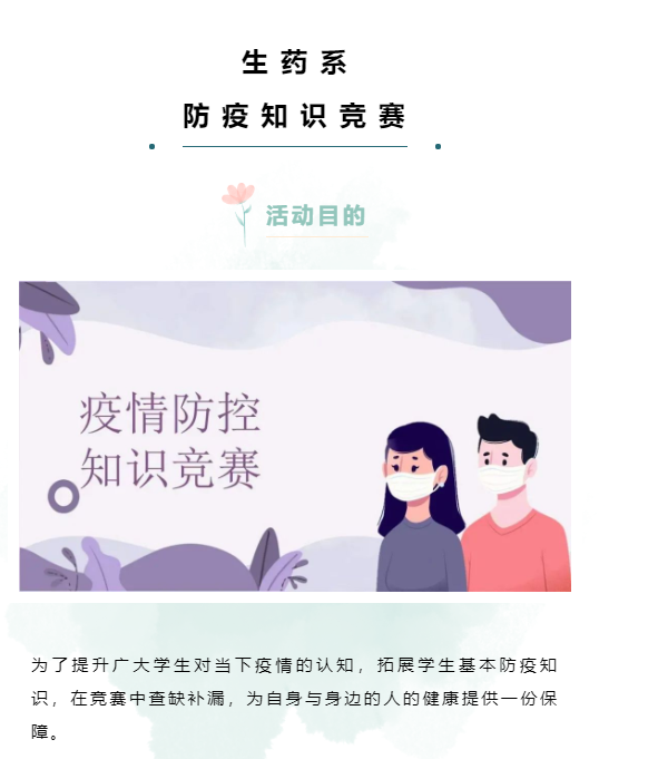 疫情防控知识竞赛由生药系生物专业学生组织发起,通过竞答方式,向同学们普及了防控、救助及新冠医药等方面的知识,以此提高同学们的防范能力,科学有效防控疫情。