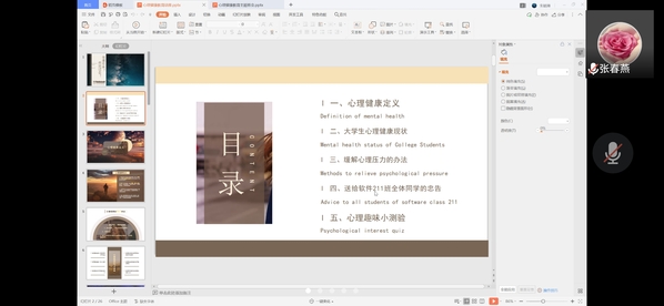 软件211班范宇航分享到:“通过这次心理班会, 我对心理健康有了比较大的认识。心理问题不容小视,作为学生的我们应该保持乐观的情绪、愉快开朗的心境,对未来充满信心和希望,当遇到悲伤和忧愁的事情要学会自我调节,适度地表达和控制情绪,做到胜不骄、败不馁、喜不狂、忧不绝;保持和谐的人际关系,乐于与他人交往,在交往中能用理解、宽容、友谊、信任和尊重的态度与人和睦相处;与此同时还要保持良好的环境适应能力以及浓厚的学习兴趣和求知欲望。在今后的道路上, 我们要以良好的心理素质迎接挑战,为国家的富强奉献自己的青春。”