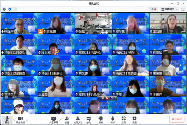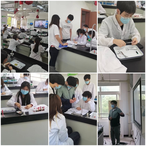 为加强同学们对专业技能的训练和掌握,提高职业素养和技能水平,营造比学赶超帮的良好学习氛围,5月 22日,动科系通过线上线下结合方式开展第八届宠物嘉年华之外科缝合、手术结操作技能比武大赛,全系24名(组)同学踊跃报名参加比赛。各年级辅导员、团学骨干和学生代表共40人通过网络直播观看了比赛。专任教师郑敏萍、李天顺、胡军担任本次比赛评委。
