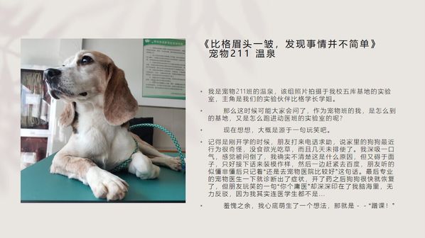 师生代表对15名同学的作品和表现进行投票。最终,动医202蒋家怡《一个平平无奇的故事》、宠物211温泉《比格眉头一皱,发现事情并不简单》 、动医211黄麟壹《地主家的两个傻儿子》分获故事组一、二、三等奖;动医202吴志龙《小布偶第一次照镜子》、动医(中高贯通)181彭悦《春天和兔子》、动医203王婧《见过吐鼻涕泡泡的小狗嘛》分获摄影组一、二、三等奖;动医203高嘉麒《怎么回事小老弟》 、宠物212蒋歆悦《修狗奇怪睡姿大赏》、动医211丁召兵《布偶》分获摄像组一、二、三等奖。同学们通过镜头记录和故事分享,用心、用情、用爱观察美、创造美、传递美,从不同角度反映对于生命的尊重和对宠物的热爱,锻炼了宠物摄影技能,同时丰富了同学们的课余文化生活。最后,让我们一起欣赏同学们的作品吧!