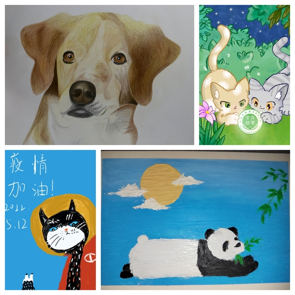 活动一经发起,受到同学们的热烈欢迎,共收到参赛作品58幅。同学们以动物为主角,采用各种绘画方式,结合不同主题绘出精彩作品,通过动物彩绘,来展示宠物的美,表达生命的意义。经过专业老师评选,结合师生代表投票,最终评选出一等奖2名,二等奖4名,三等奖6名,优胜奖若干名。