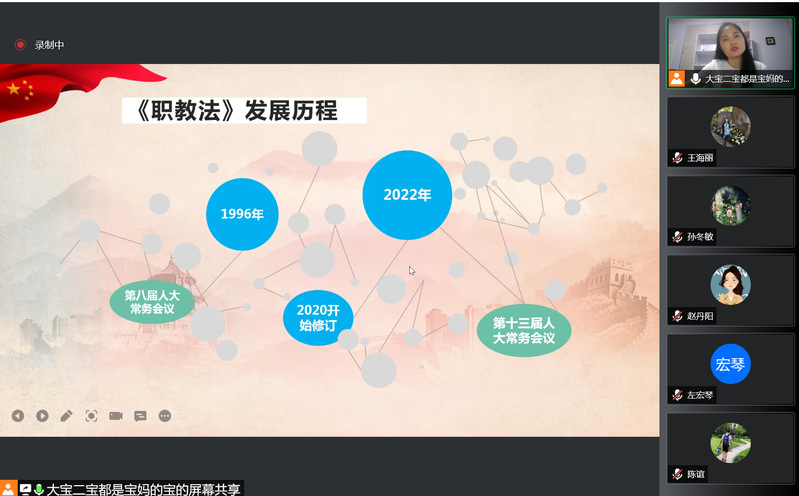 《中华人民共和国职业教育法》于2022年4月20日修订通过,自2022年5月1日起施行。为深入学习贯彻新《职业教育法》,6月20日晚,经管系党总在线上开展“贯彻新《职教法》 做合格职教人”主题党日活动,全体党员参加学习。党总支副书记张媛主持会议。