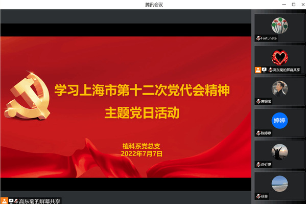 为深入学习贯彻习近平新时代中国特色社会主义思想,学习领会上海市第十二次党员代表大会精神,引导党员教师牢记嘱托,砥砺奋进,7月7日下午,植科系党总支开展“学习上海市第十二次党代会精神”主题党日活动,全体党员参加学习。党总支书记高东菊主持会议。