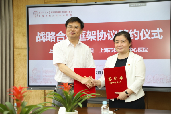 7月15日,学院与松江区中心医院战略合作框架协议签约仪式在松江区中心医院行政楼举行。学院党委书记蔡红、副院长张江,松江区中心医院党委书记徐萍、副院长朱涛出席签约仪式。