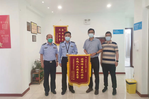 走访期间,费国强等人先后和公安、消防单位的负责人就共同做好校园治安、消防、交通安全等工作进行了深入交流,参观了交警监控指挥中心,并把印有“保障师生出行安全,无愧人民满意交警”的锦旗赠送给松江交警一大队。