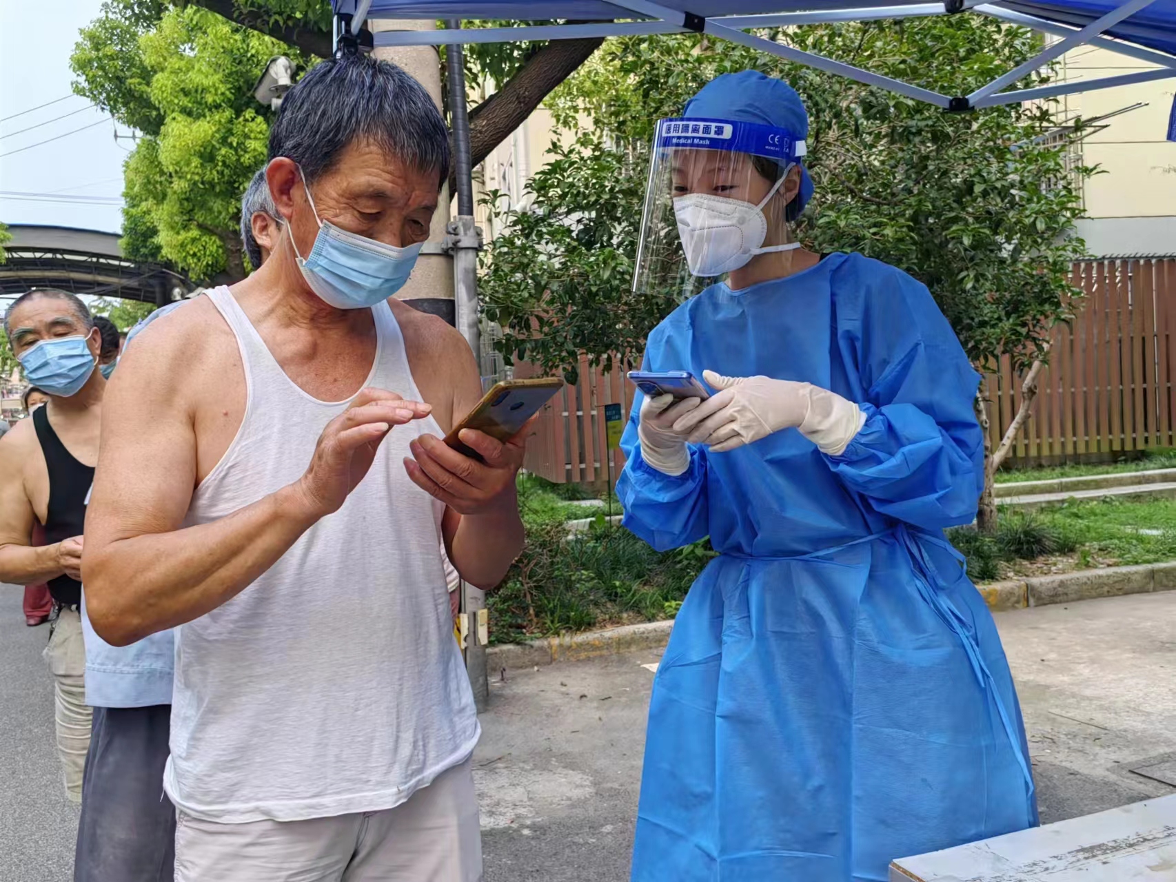来自动物科学技术系动医211龚宇航,自7月3日在宝山区张庙街道呼玛四村开展志愿服务。在服务过程中,他认真听从社区的安排,为前来核酸检测的居民做好扫码工作,耐心解决老年居民智能手机上操作的各类问题。“我们不仅随时准备着,同时也会一如既往地用心做好志愿服务,贡献自己的一份力量。”