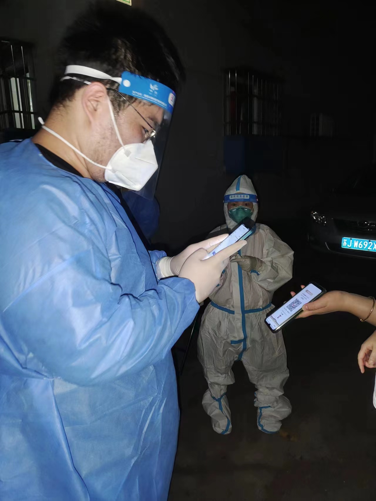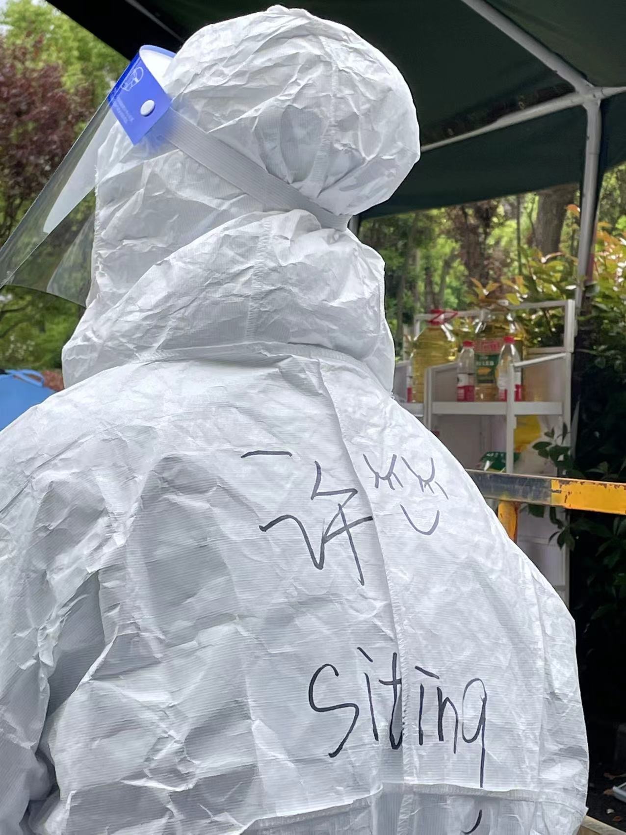 来自智慧农业工程系设施(中高贯通)181班的田思佳,自6月12号起,分别在松江区岳阳街道西新桥常态化点位进行采样、扫码以及岳阳街道社区卫生服务中心进行收样工作。这段时间温度依旧居高不下,每次服务后,她的衣服都被汗水浸湿。田思佳有感而发:“看到许多医务人员在酷暑下依旧穿着防护服工作,我深感敬佩!”