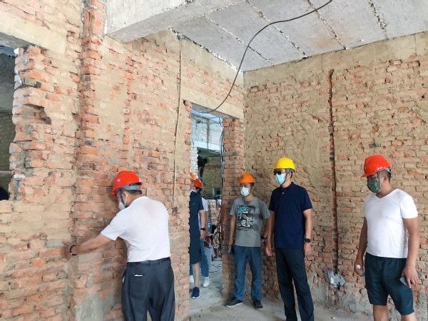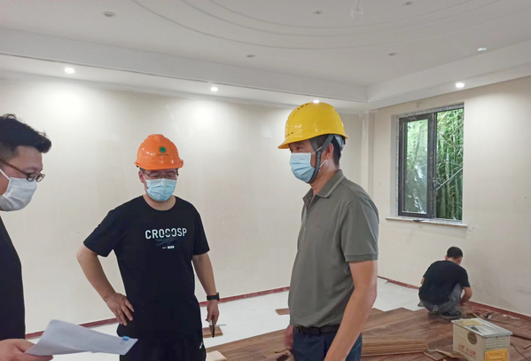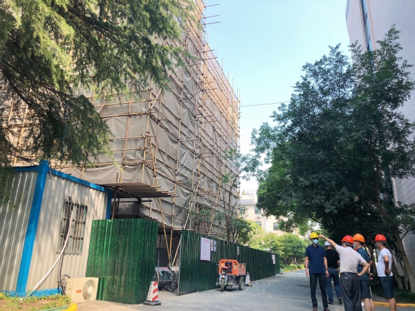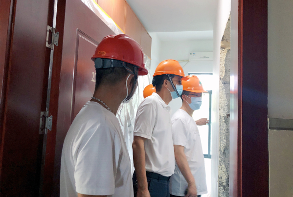 8月15日,费国强带队走访了五厍实训基地,重点对食堂运行、维修项目开展进行了深入了解;检查生活楼卫生间项目、消防提升改造项目;翻阅防疫台账,仔细询问卫生间存水试验开展、工程进度情况;对坚守在岗位上的工作人员表示感谢,鼓励大家错时施工、克服高温,早日完工并交付使用。