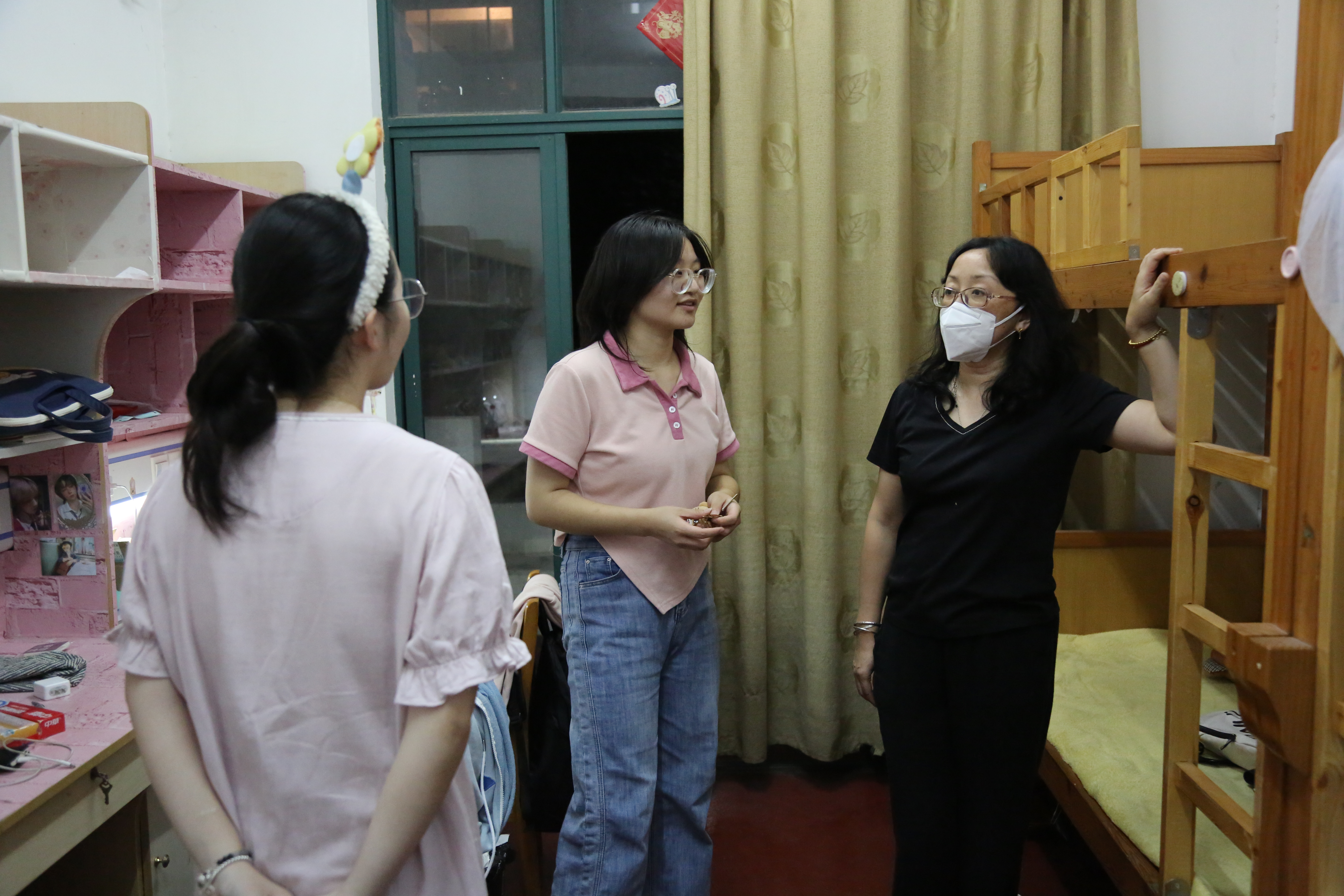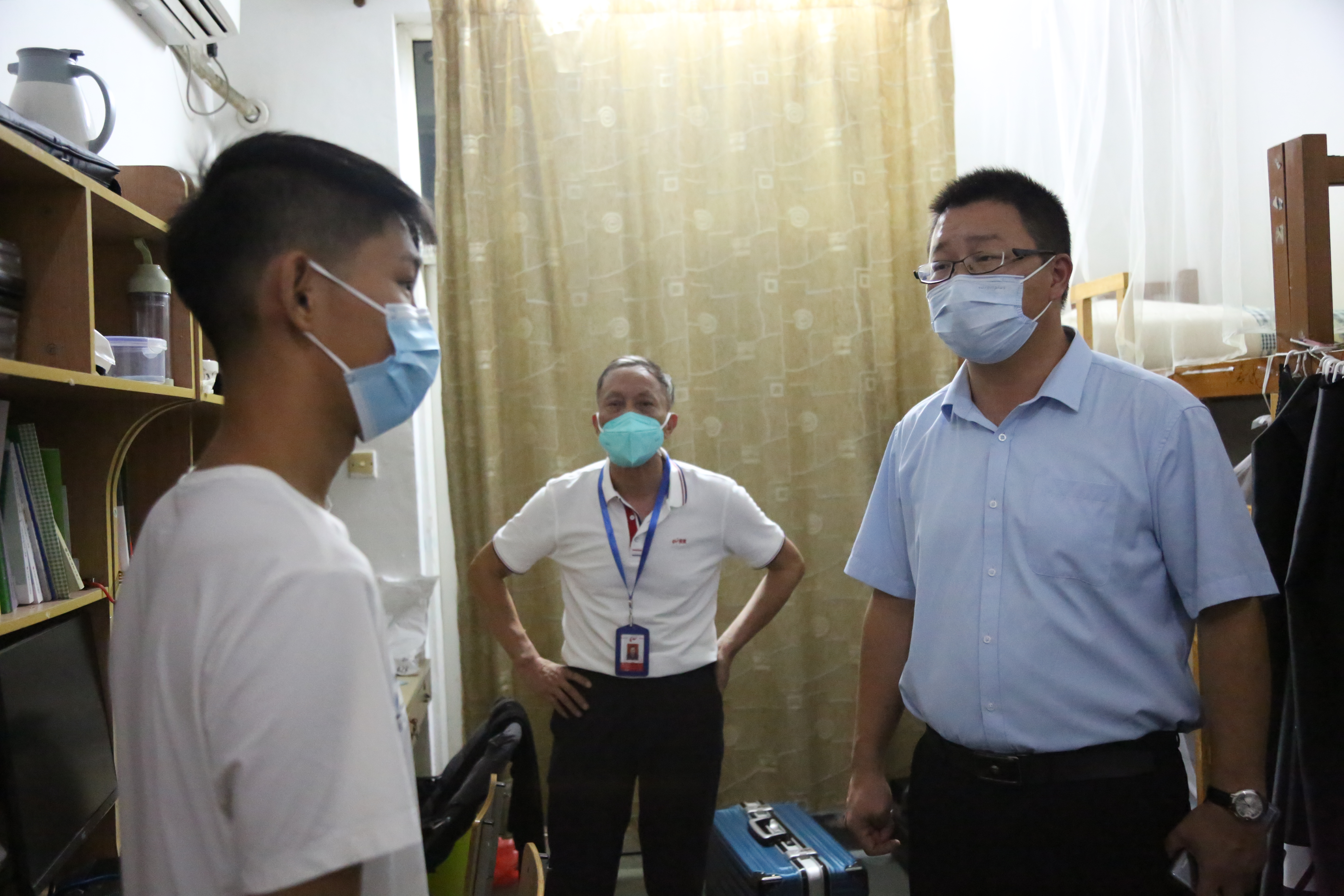 走访过程中,邵阳与同学们进行了亲切的交流,详细询问大家的报到情况、入住情况和到校感受。“同学们都从哪里来”“来学校的路上顺利吗”“大学三年有什么规划”“生活必需品准备的怎么样”等一句句亲切的问候,迅速拉近了师生间的距离。老师们鼓励大家积极适应新环境、融入新集体,嘱咐同学们要养成良好的生活作息和卫生习惯,严守校园疫情防控要求,落实各项防控措施,佩戴口罩勤洗手。同时,老师们对他们即将迎来的大学生活和专业学习给予指引,勉励同学们扎实学好专业基础知识,科学规划大学生涯,努力实现自己的奋斗目标。此外,邵阳一行查看了宿舍的安全情况,要求同学们提高安全防范意识,谨防各种形式的诈骗,叮嘱同学们如遇到困难及时联系辅导员,学院将在第一时间予以协调解决。
