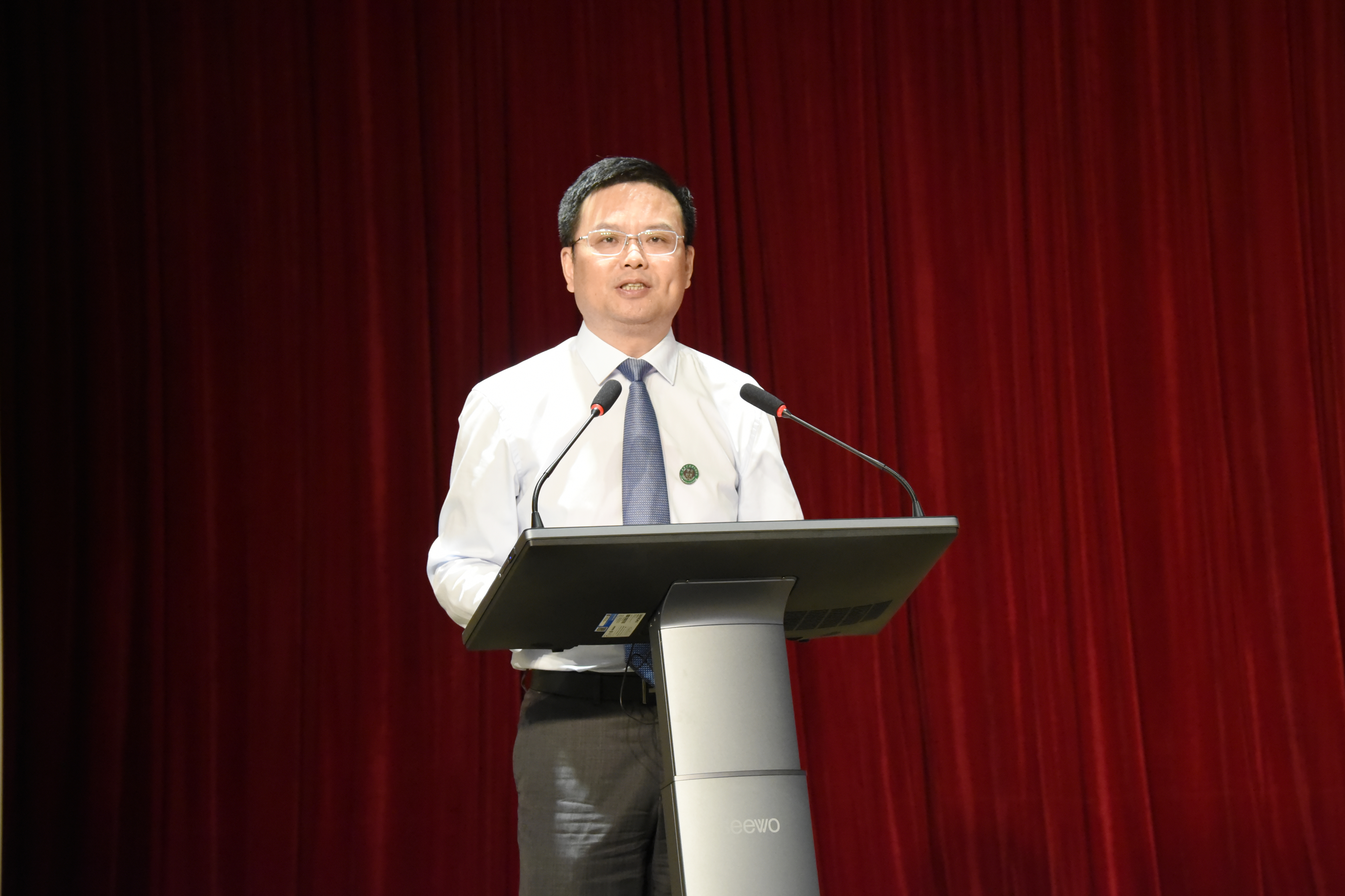 在激昂的国歌声中,开学典礼正式开始。党委书记蔡红代表全校师生向2022级新同学表示热烈欢迎,他表示同学们作为新上农人,肩负重任,要运用所学知识和练就的本领,紧跟上农前辈们的足迹,向着“懂农业、爱农村、爱农民”的方向努力,为实施乡村振兴战略,服务三农,建设美丽中国作出自己的贡献。同时对全体新生提出三点希望:一是保有一份初心,坚定理想信念,树立正确三观,提升综合素养,勇做新时代的“追梦人”;二是收获一技之长,结合理想目标,打好基础,学好专业理论知识,认真参加实训实习,提高动手能力,以精益求精的工匠精神打磨自己技术技能;三是拥有一种精神,要执着创新,养成阅读、思考、探究的好习惯,敢于突破,开展创新性探索,在实践中提升创新创业能力。
