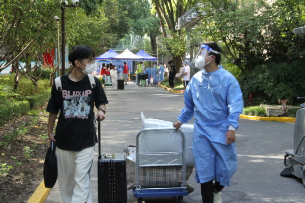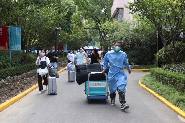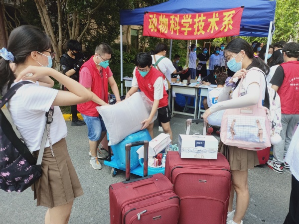迎新当日,植科系志愿者们早早来到迎新地点布置注册会场,分布于各个接待点等待着新面孔。他们身穿防疫服、志愿者马甲,热情地接待每一位新生,引领新生完成核酸、人脸识别、系部注册、宿舍注册等一系列手续,迅速帮助新生找到宿舍领取钥匙安置行李。在烈日下,志愿者们一趟又一趟帮新生搬运行李,汗水浸湿衣衫,手套下是泡的发白的手,但大家依旧微笑着解答新生的问题,热络地介绍着学校情况;志愿者们的热情和贴心,让新生在新校园里找到家一样的感觉,也让因疫情无法进校的家长多一份安心。