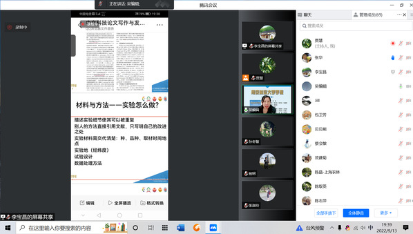 9月13日晚,科研处邀请《南京林业大学学报》(自然科学版)编辑部主任吴祝华在线上为学院教师作题为“中文科技论文的撰写与发表指南”的专题培训,70余名教师参加学习。科研处处长李宝昌主持培训会。