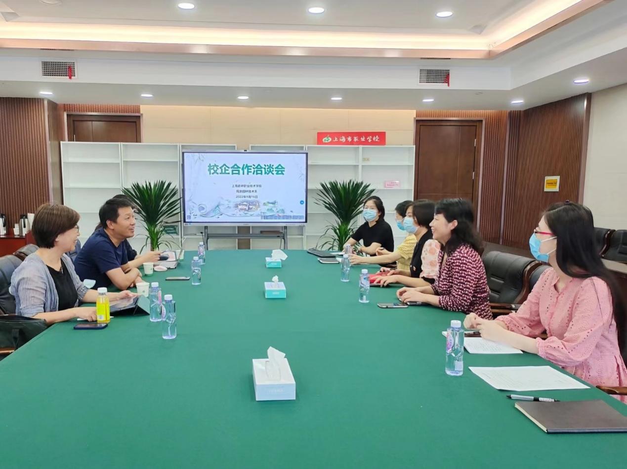 9月16日下午,在第四会议室,园林系召开校企合作洽谈会。上海溢柯园艺有限公司董事长任飞一行3人、园林系主任刘秀云和教师代表参加洽谈会。