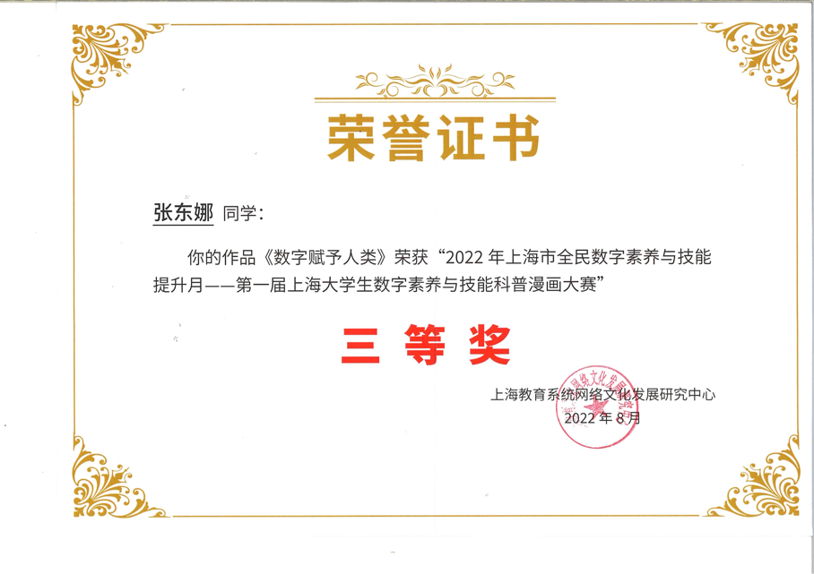 据悉,第一届上海大学生数字素养与技能科普漫画大赛以“数字赋能,全民共享”为主题,作为2022年上海市全民数字素养与技能提升月系列活动之一,旨在进一步推动校园数字素养与技能建设,鼓励青少年积极参与全民数字化实践。近年来,学院积极对标教育部教育信息化2.0行动计划和上海市全面推进城市数字化转型要求,深入推动高校数字化转型升级,始终坚持将提升学生信息素养、数字素养融入人才培养全过程。