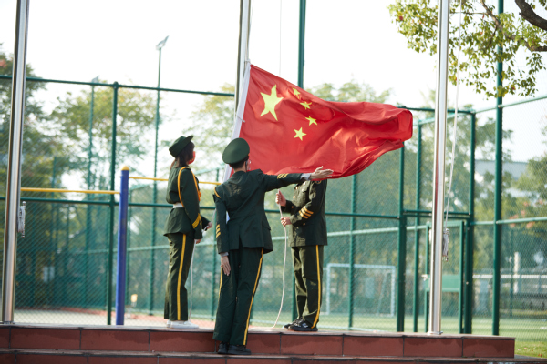 上午8:00,学院国旗护卫队迈着整齐矫健的步伐,护送国旗行进至升旗台,在雄壮豪迈的国歌声中,鲜艳的五星红旗冉冉升起。全体师生肃然而立,共唱国歌,向缓缓升起的国旗行注目礼,送上对祖国最深切的祝福。
