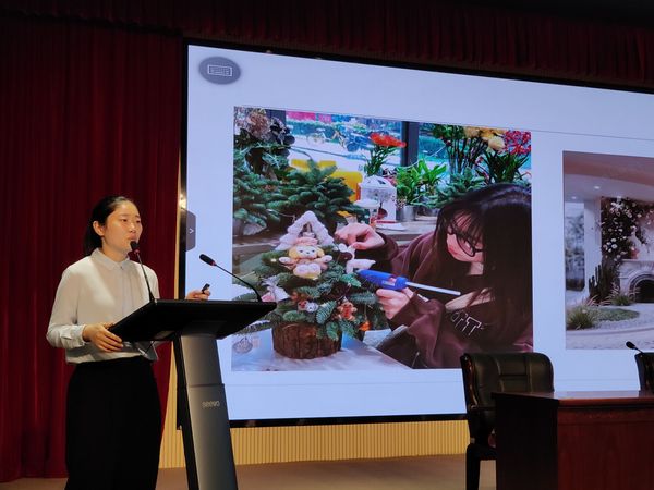陆多佳分享了她在从事花艺花卉行业过程中的经历和感悟。首先,她介绍了目前花艺行业举行的各类比赛,着重介绍了世界技能大赛的参赛条件、选拔过程及荣誉奖励。国家对世界技能大赛十分重视,在两年一届的世赛前会举行各级别技能大赛进行激烈的角逐选拔,对于走到最后的获奖选手则会有非常丰厚的奖励。而世赛有年龄限制,鼓励同学们一定要在年轻时多拼搏、多努力,实现自我价值。作为44届世赛选手、45、46届世赛教练,她分析了近几届世赛主流设计趋势,从以前强调构架之美,到如今强调植物的自然之美。世赛的技术在不断迭代更新,希望学弟学妹们保持创新精神,紧跟时代步伐。其次,陆多佳介绍了上海及其他各地花卉行业发展现状及特点,其中上海花市虽不如昆明以及国外的大型花卉市场规模大、品种多、价格低,但胜在产品新颖,极具特色。除了常见的鲜切花,在上海花市还能买到造型别致、形态各异的叶材和枝材。总结了现代花店的流行趋势,花店将朝着生活化、多元化、体验化、景点化、网络化发展,并根据国家对技能大赛的大力扶持,预测花卉商品未来流行趋势将融入更多艺术元素,向高级定制、个性定制化发展。最后,陆多佳寄语学弟学妹们,希望大家可以找到自身兴趣所在,把握在校时光,不断拼搏努力,同时要保持创新精神,在花卉生产与花艺行业闯出自己的一片天地。