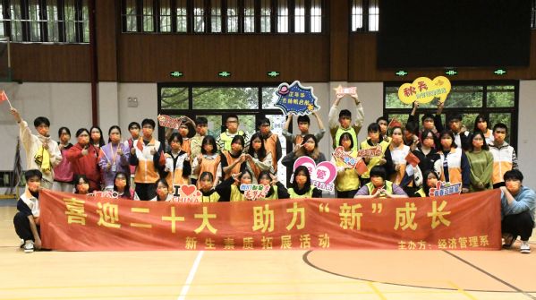10月6日,在体育馆,经管系学生党支部举办“喜迎二十大,助力‘新’成长”新生素质拓展活动。活动面向国庆期间的留校生,各系共40余人参加。